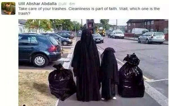Sungguh biadab Ulil Abshar menyamakan wanita yang bercadar dengan tempat sampah, justru ialah yang sampah. Berani menghina para wanita yang menjalankan syari’at Allah. Sungguh aneh tokoh liberal ini??!!. Katanya menjunjung kebebasan, ternyata yang dijunjungnya hanya wanita yang membuka aurotnya, sementara wanita yang berjilbab dengan menutup aurotnya disamakan dengan tempat sampah.!!!. Penghinaan Ulil ini adalah penghinaan terhadap jutaan wanita yang bercadar, penghinaan terhadap para wanita yang ingin menutupi dirinya karena Allah, ingin mempersembahkan kecantikannya hanya untuk suaminya…, penghinaan terhadap istri-istri para ustadz, istri-istri para ulama, penghinaan terhadap ibunda kaum mukminin, istri-istri Nabi shallallahu ‘alaihi wasallam. Tentu Ulil akan dengan PeDe berani mempertanggung jawabkannya di hadapan Allah !!